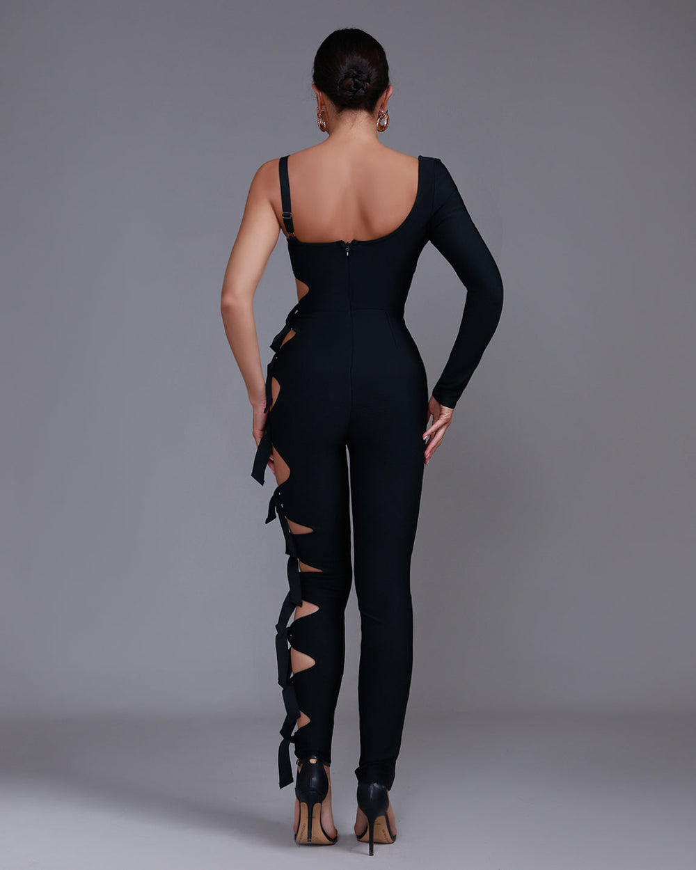 Be daring and bold with this Asymmetric Cut-out Knot Jumpsuit! This jumpsuit features an asymmetrical cut-out knot design that adds edge and flair, making it the perfect outfit for a night out on the town. Show off your daring personality and make a statement with this must-have jumpsuit!