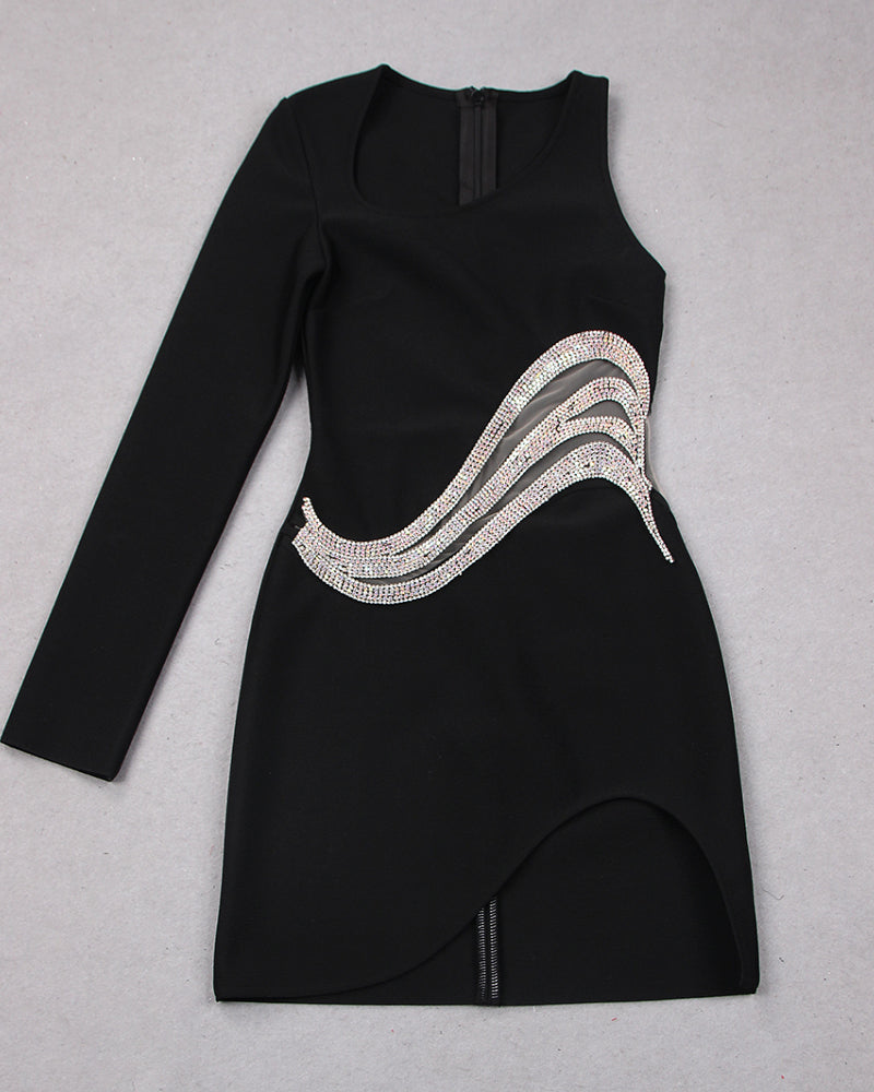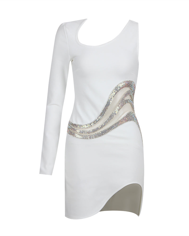Step out in style with our Asymmetric Diamonds Mesh Bandage Mini Dress! The mesh bandage design adds a touch of flair to this already unique dress, making it perfect for any occasion. With its asymmetric cut and diamond pattern, you'll feel confident and chic from the moment you put it on. Don't miss out on this must have piece for your wardrobe!
