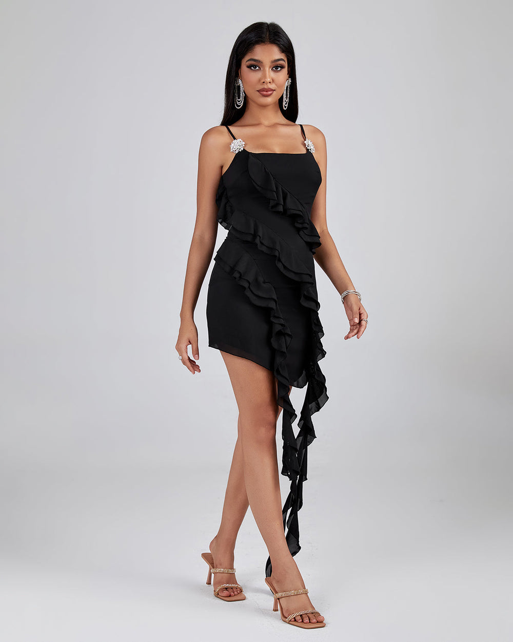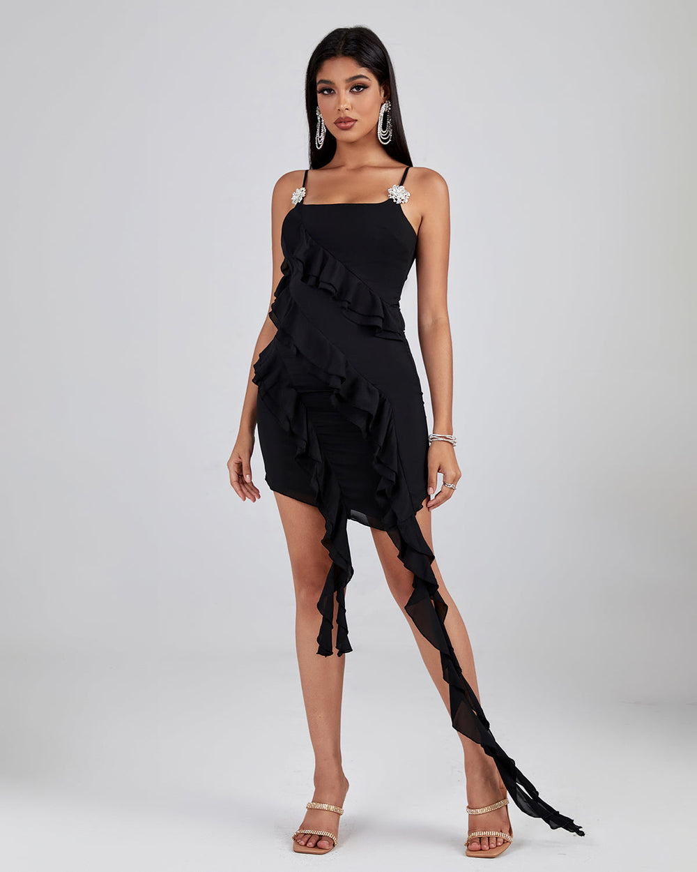 An elegant piece for the modern woman, this asymmetric ruffled mini dress is sure to make a fashion statement. Woven in a unique design, the dress is crafted from premium fabrics that will ensure comfort and a flawless fit. With its asymmetrical ruffled details, this dress is sure to add an air of sophistication to any outfit.