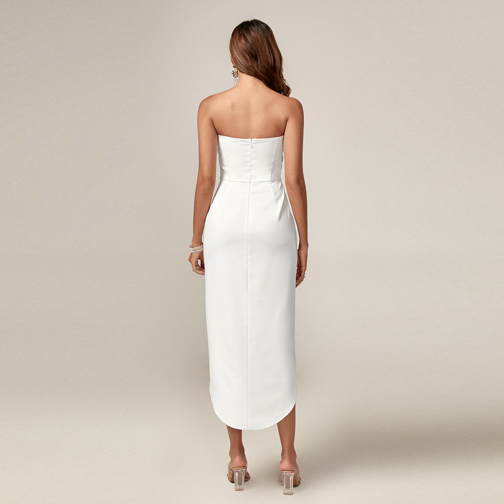 Be elegantly captivating in this feather-trimmed maxi dress featuring a high split. Delicate material flows from shoulder to hem creating an eye-catching silhouette that will have you stealing the show wherever you go. Feel exquisite glamour in this ethereal piece!