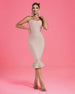 Be the epitome of elegance in our Backless Fishtail Midi Bandage Dress. This luxurious dress features a stunning backless design and a figure flattering fishtail silhouette. Made with high-quality bandage material, it hugs your curves in all the right places. Perfect for special occasions and events.