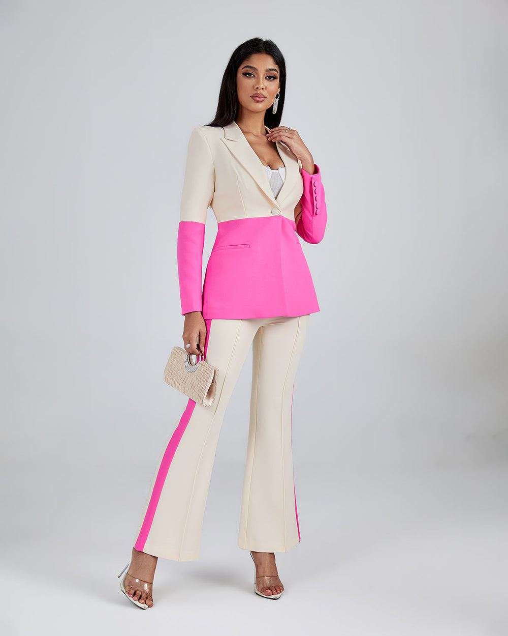 Dress to impress with the Barbie Contrast Color Suit Set! Tailored to fit and flatter any silhouette, this stylish ensemble features an eye-catching two-tone design perfect for work and special occasions. Get ready for compliments galore!