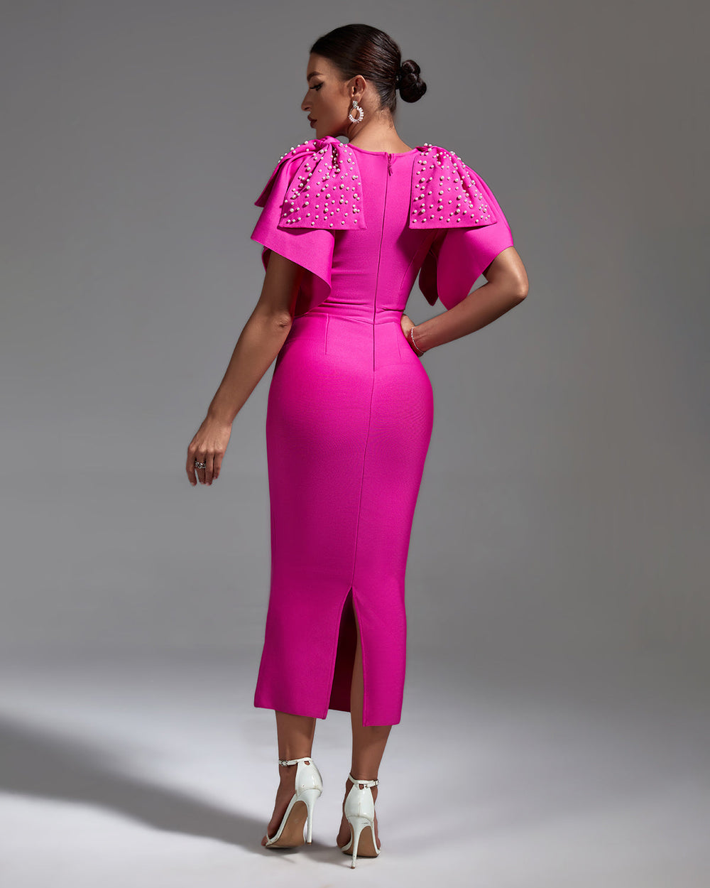 Feel like a beautiful butterfly in this fashion-forward Beading Decor Butterfly Midi Bandage Dress. Featuring intricate beading and eye-catching butterfly motifs, this unique dress is sure to elevate your style. Its timeless midi length ensures you look your best with ease.