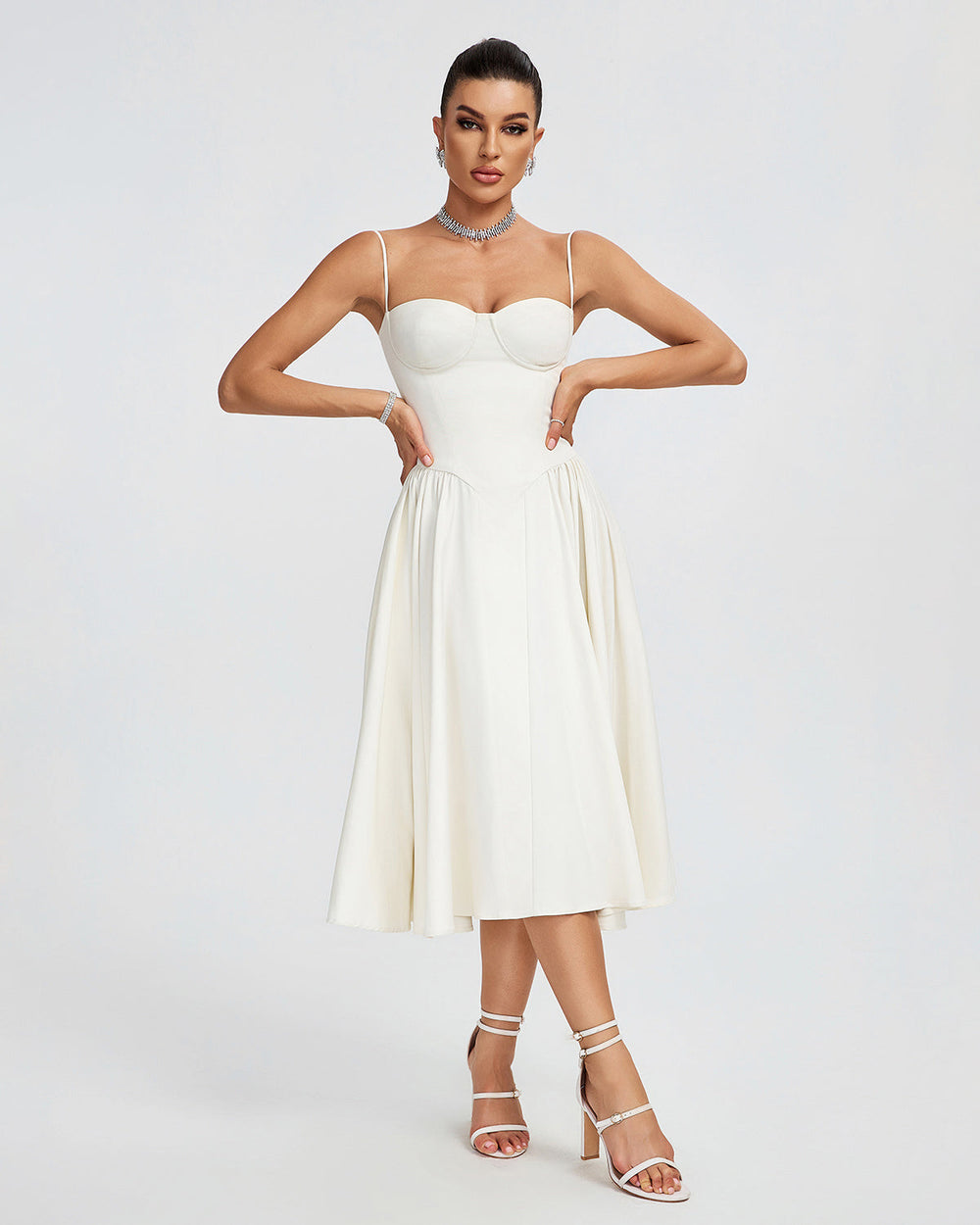 Achieve the perfect hourglass figure with our Beige Parfait Twill Corset Midi Dress. Crafted with high quality twill fabric and a figure flattering corset design, this dress hugs your curves in all the right places while providing comfort and style. Elevate your wardrobe with this must-have piece.