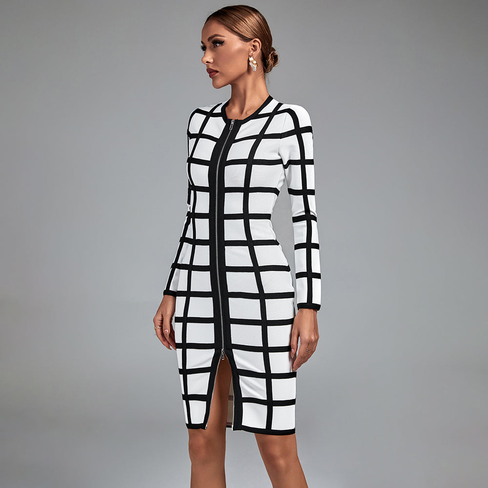 Look flawless in this stunning Black Stripe Midi Bandage Dress. Cut to perfection in a flattering midi-length and crafted from a luxe bandage fabric, this sophisticated piece is the essential addition to any modern wardrobe, offering a timeless silhouette with a hint of decadence. Add a touch of elegance to your look with this stylish piece.