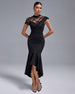 Make a statement with our Black Lace Mermaid Long Dress! This elegant and figure flattering design will make you stand out at any event. The intricate lace detailing adds a touch of sophistication, while the mermaid silhouette accentuates your curves. Perfect for a night out or special occasion, this dress is a must-have in your wardrobe.