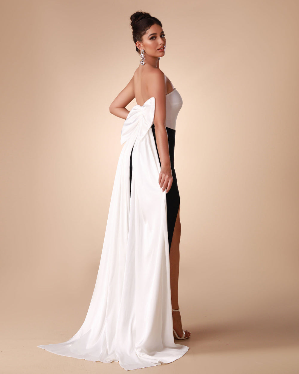 Exuding sophisticated elegance, the Black White Bow-Detail Bandage Long Dress is a timeless statement piece. Showcasing an effortlessly chic aesthetic, this dress combines classic monochrome colouring with a romantically classic bow-detail, all hand-crafted together with a classic bandage-style fabric for an exquisite finishing touch.