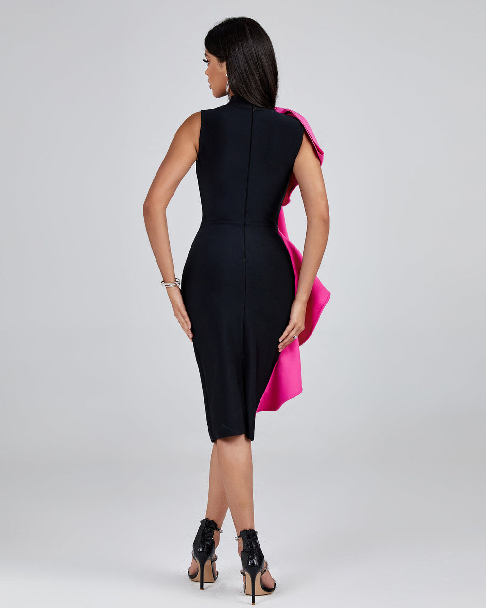 Featuring a bowknot at the waist and a ruffled hem, this midi bandage dress is the perfect blend of modern and chic. Its mid-length shape and snug fit will flatter your curves and make you stand out in any occasion.