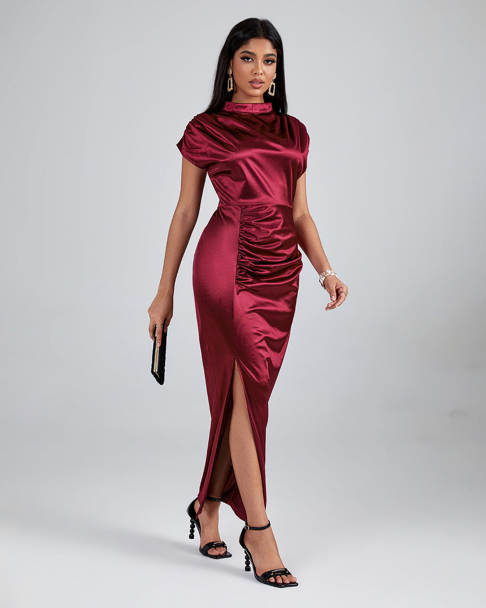 Feel like a total queen in this regal Burgundy High Neck Split Maxi Dress! Flattering on any body type, you'll love its silky fabric and beautiful deep hue. Stylish split detailing and a high neckline make for a swoon-worthy look. Ready to be the belle of the ball? Get this dress today!