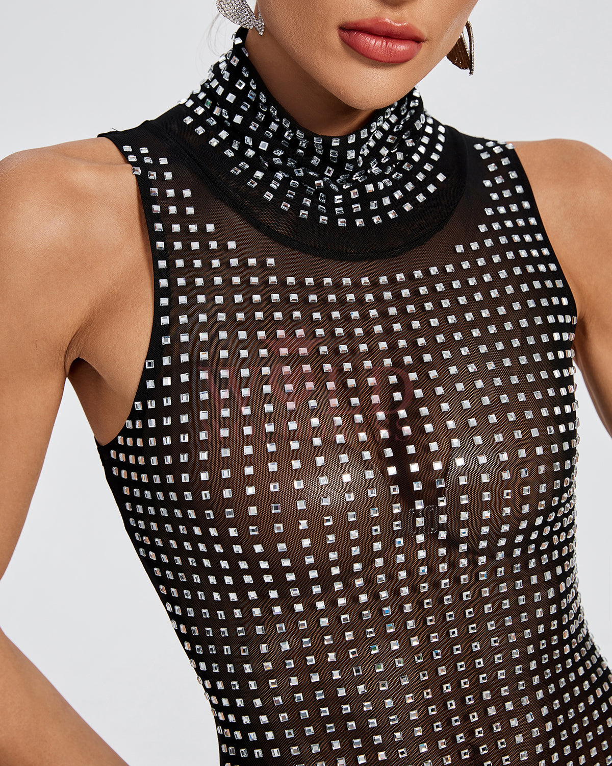 Crystal Embellished See-through Maxi Dress