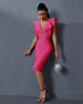 Light up the room in this Deep-V Ruffle Midi Bandage Dress. Featuring a glamorous, figure-hugging silhouette and elegant ruffles, this stunning dress is sure to turn heads. Make a statement at your next event in this show-stopping design!