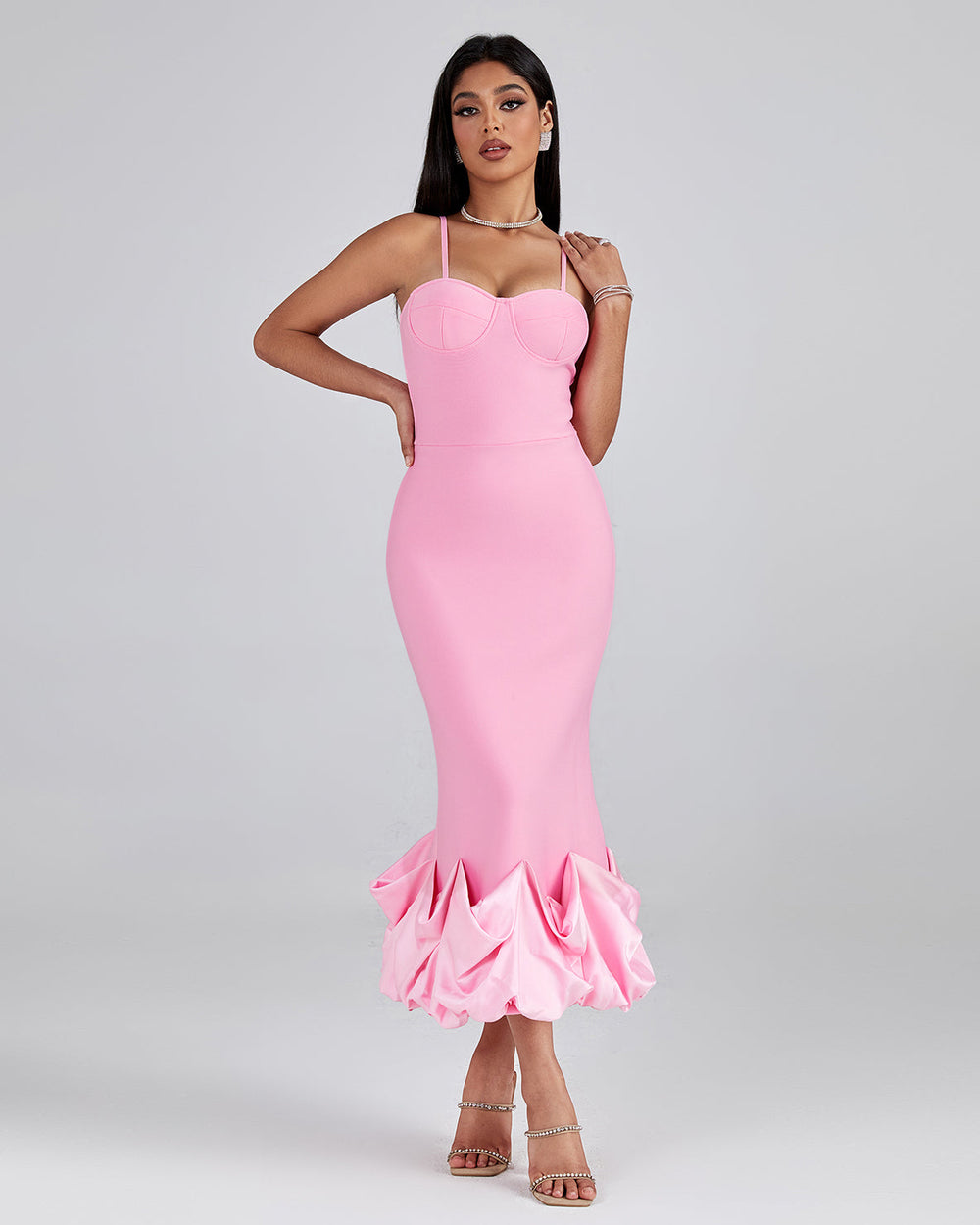 Add effortless elegance to your wardrobe with our Draped Bottom Flounced Bandage Dress. Crafted with luxurious materials that hug your curves in all the right places, this beautiful dress is sure to turn heads. The unique draped bottom and flounced accents make this dress an exquisite addition to your collection. Enjoy a stylish and sophisticated look with this timeless piece.
