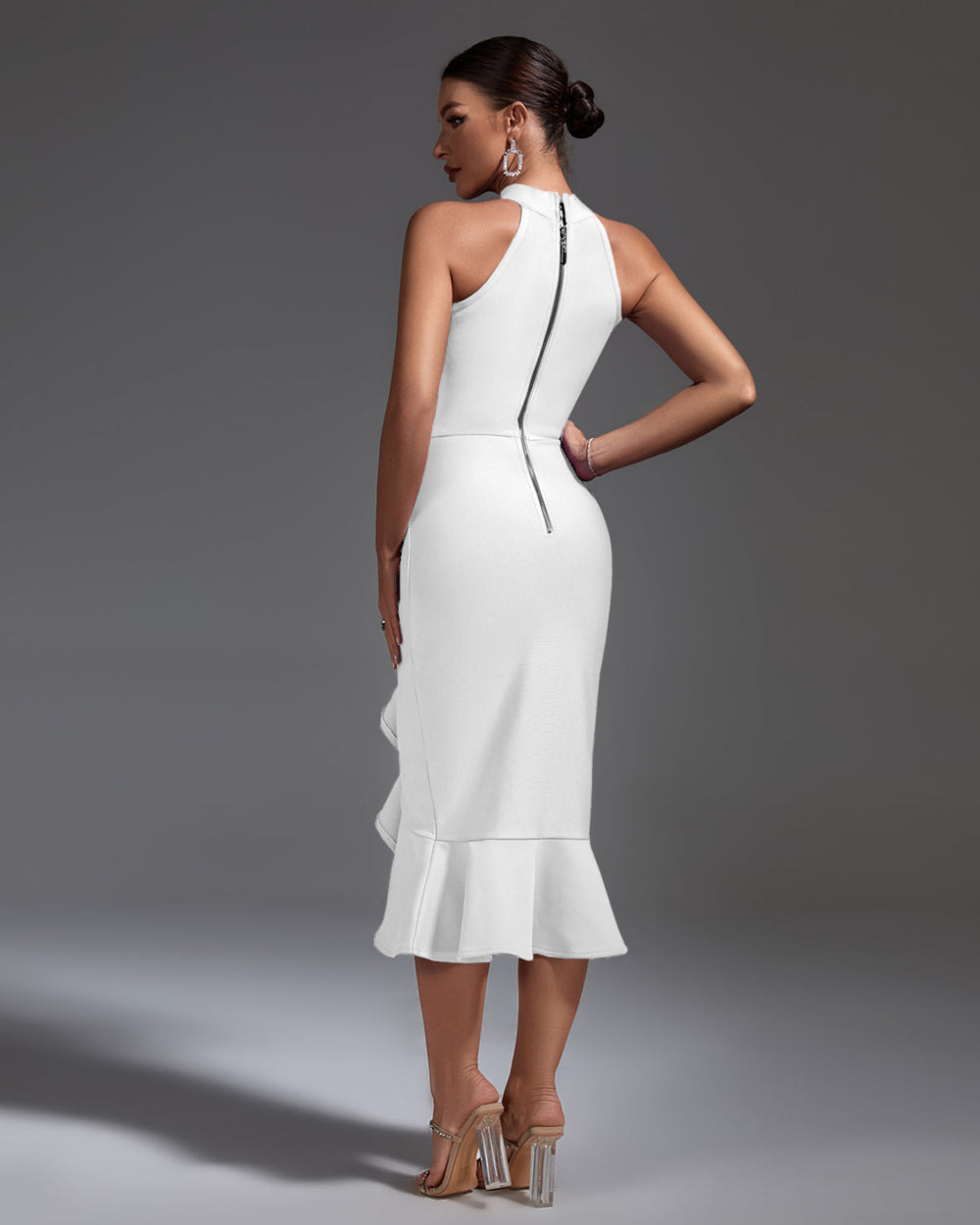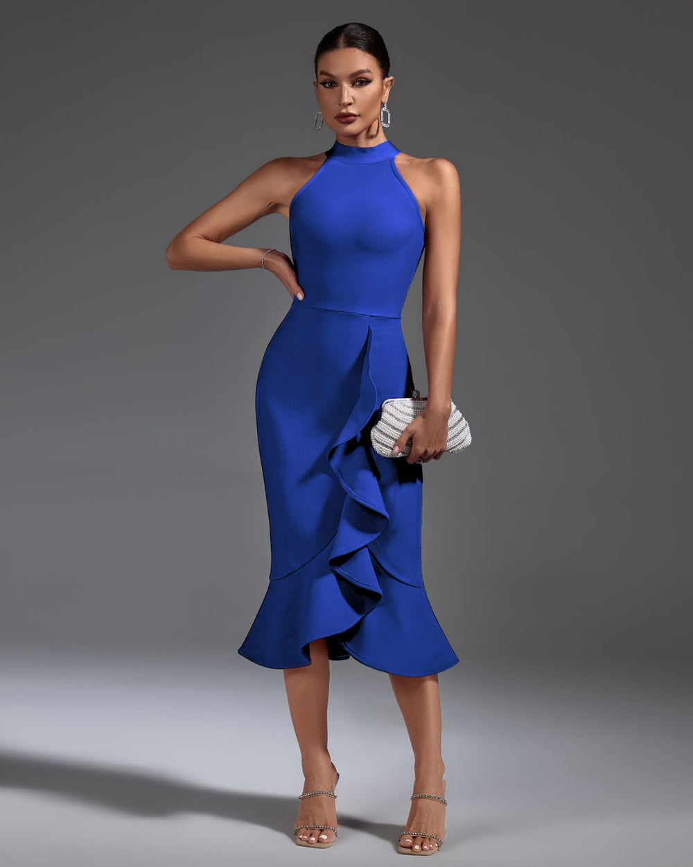 Capture elegance with this exquisite ruffle midi bandge dress. Crafted from breathable fabrics for a flattering fit, this dress will make you look and feel like a fashion icon. Whether you're attending a special event or heading to the office, this stunning design will lend a timeless, effortless touch of refinement.