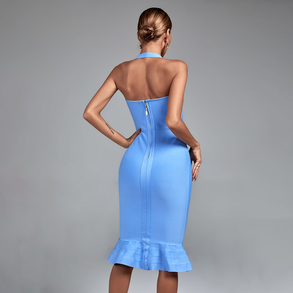 Turn heads at your next event in this exquisite evening halter over knee fishtail bandage dress. Crafted from a luxurious fabric blend, the slim fit is designed to flatter your figure, while the stunning halter detail and fishtail hemline will make you look and feel like a million dollars. Make a statement in this timeless piece, perfect for any occasion.