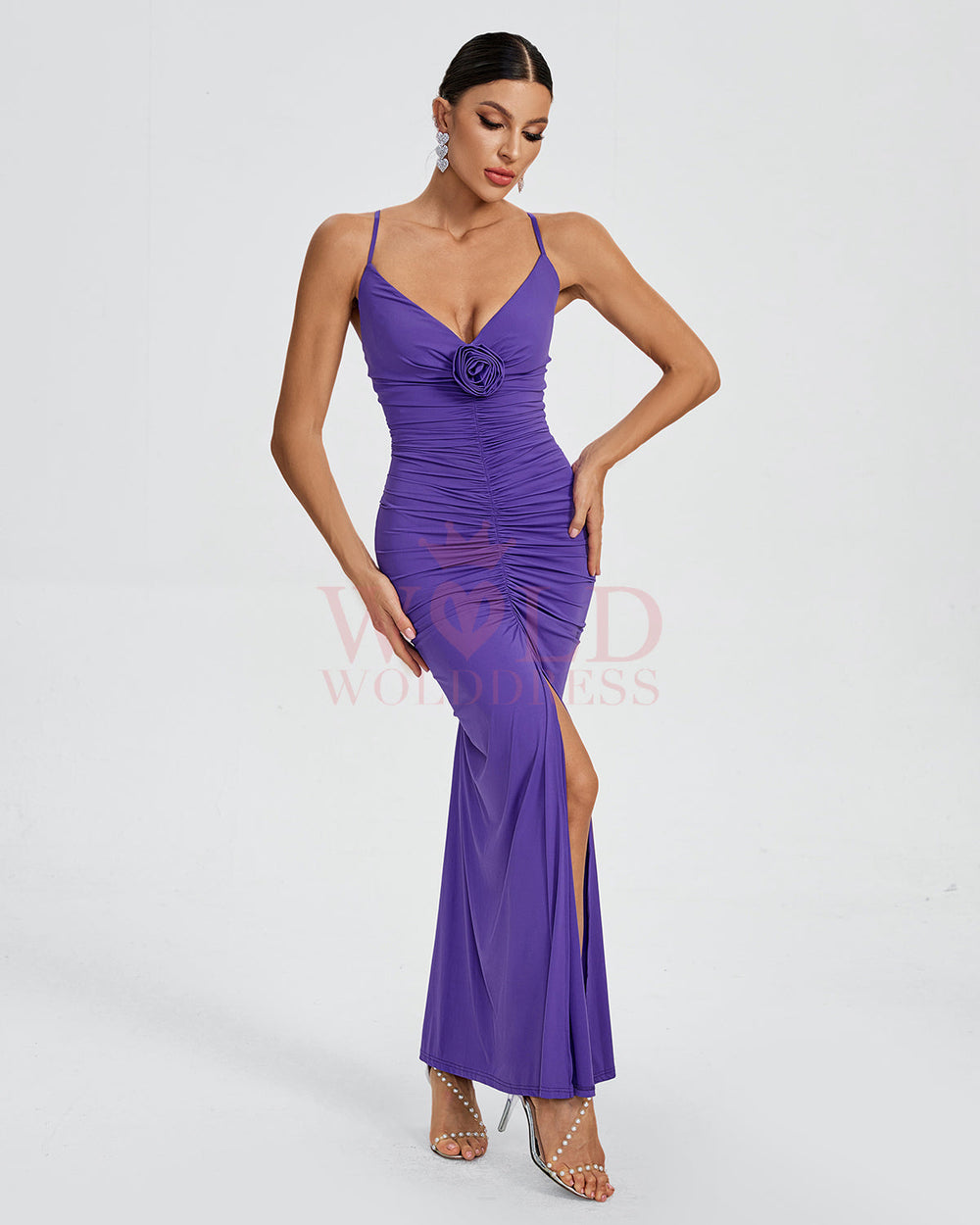 Elevate your style with our V Neck Pleated Backless Bodycon Dress. Featuring a sensual V-neck and an intricate criss-cross design, this dress accentuates your beauty. With its dual shoulder straps and thigh-high slit, it's perfect for parties, premieres, or any upscale event. Make a statement and turn heads.