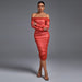 Look sophisticated and stylish in this Off Shoulder Ruched Midi Bodycon Dress! Crafted from high-quality materials for a comfortable fit, this stunning style features an off-the-shoulder neckline and a midi bodycon silhouette for an undeniable figure-flattering look. Make a statement in this chic and stylish piece!