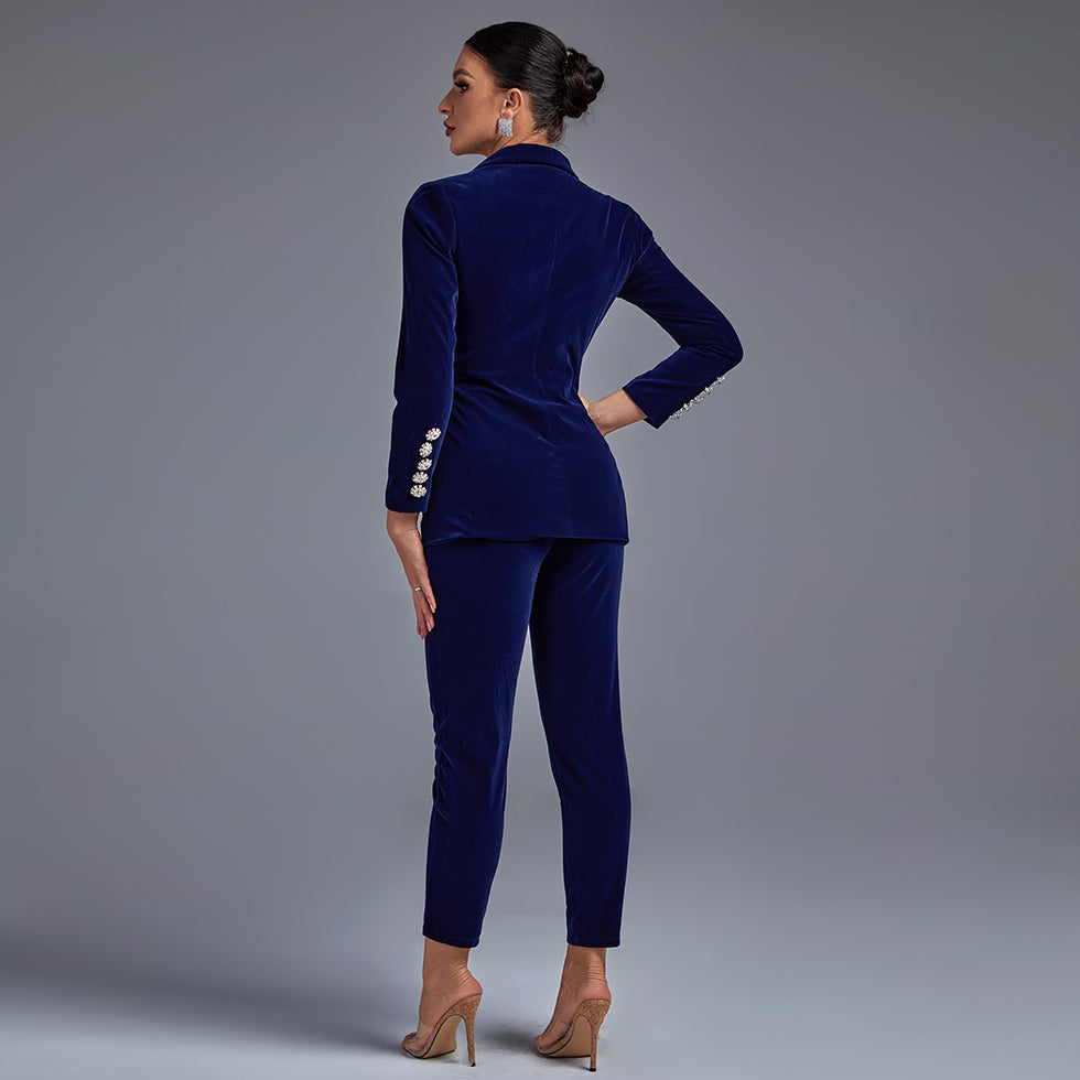 Look stylish and sophisticated this Fall/Winter season with the Velvet Fall&Winter Crystal Buckle Suit. Featuring a velvet fabric and crystal buckles, this suit will make you stand out from the crowd in an elegant and unique way. You'll get effortlessly on-trend style that will have heads turning!