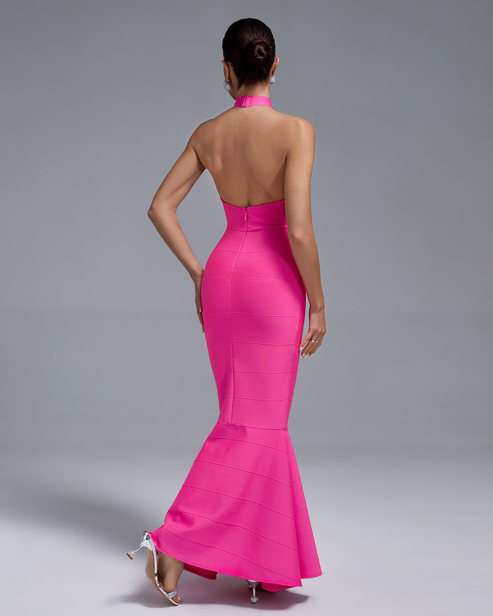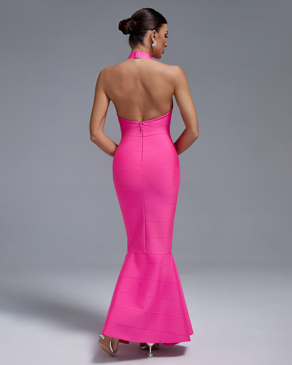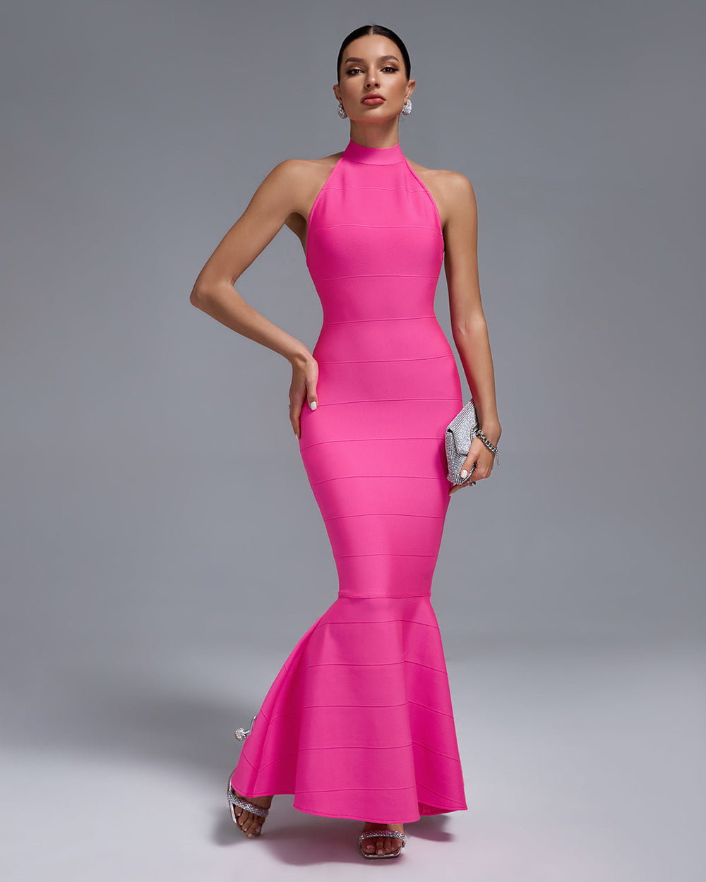 Show off your curves in our Halter Maxi Bandage Fishtail Dress! The halter neck and bandage fabric provide a flattering, figure-hugging silhouette while the fishtail hem adds a touch of elegance. Make a statement at any event in this must-have dress!