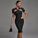 Discover effortless sophistication with this Halter Short Sleeve Cut Out Midi Bandage Dress. Featuring a unique halter neckline and midi-length cut, this dress delivers a timeless yet modern look. With a delicate cut-out on the shoulder, the elegant silhouette gives a touch of refinement. Whether dressed up with heels for a night out or paired with sandals for a casual day, this dress is the perfect option for those seeking an elevated everyday look.