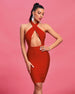 Unleash your wild side in this Halter Sleeveless Cut Out Midi Bandage Dress! This daring dress features midi length, cut out design, and a halter neckline to create a sexy silhouette. Show off your confidence and take risks this season!