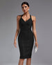 Achieve a captivating look with this halter sleeveless striped bandage dress. Its structured silhouette and minimalist design make for a timeless and sophisticated style, perfect for any special occasion. Its sleek stripes create an elegant optical illusion, making it a must-have for any sophisticated fashionista.