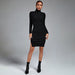 Turn heads in this stylish and modern high neck long sleeve striped bandage dress. Crafted with a flattering silhouette, this dress features a unique striped pattern that radiates elegance. Perfect for any special occasion, it is sure to make a statement.