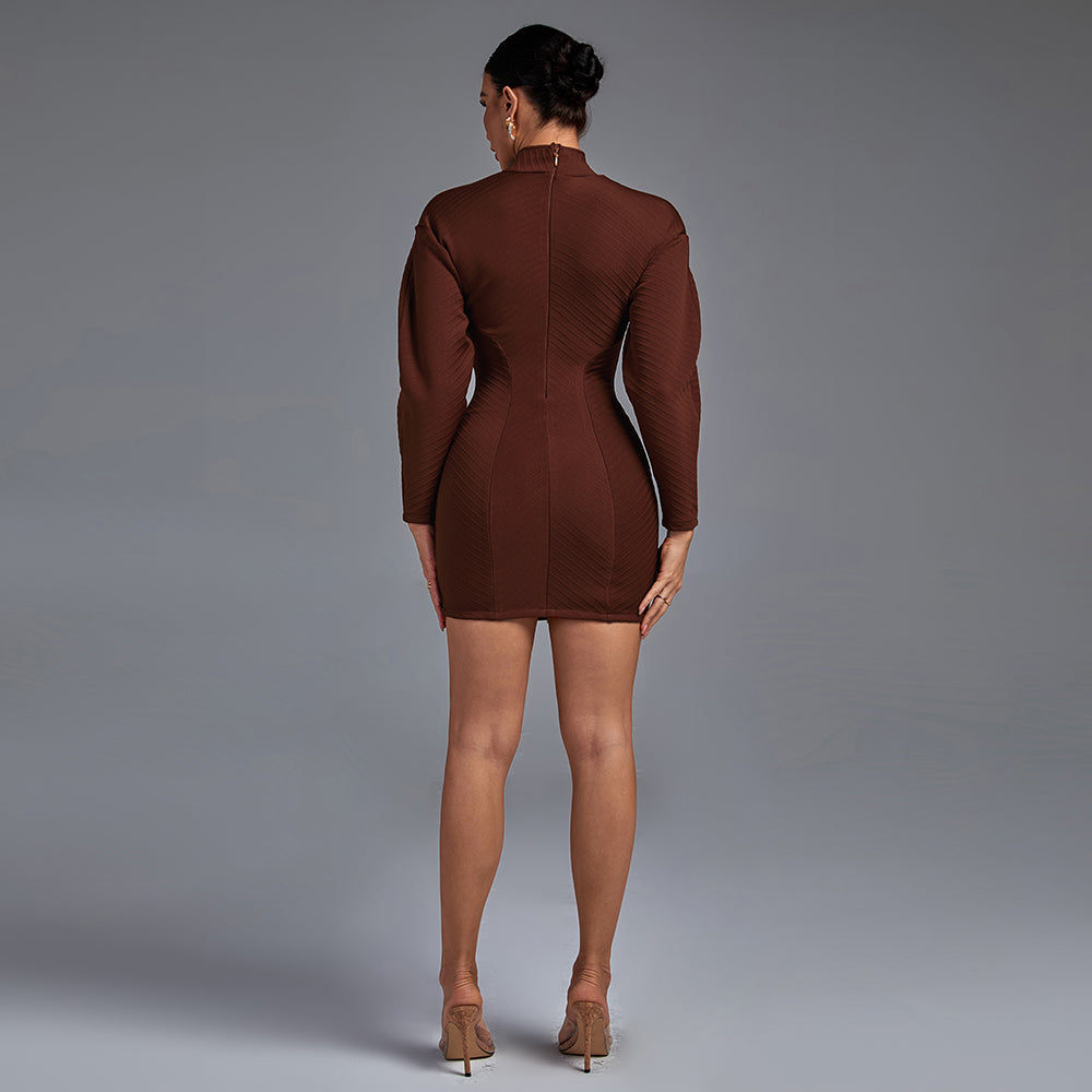 Be fashionably on-trend with this high neck long sleeve striped mini bandage dress. Crafted to contour to your figure, this piece elegantly accentuates your curves and brings an exclusive sophistication to any wardrobe. Its intricate stripy aesthetic ensures you¡¯ll turn heads with effortless style.