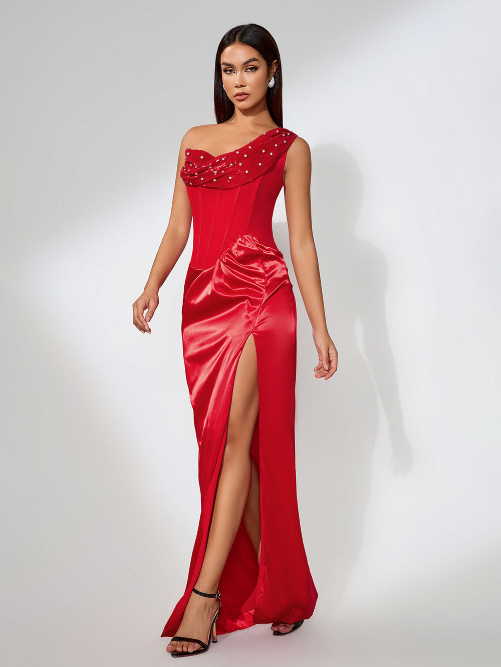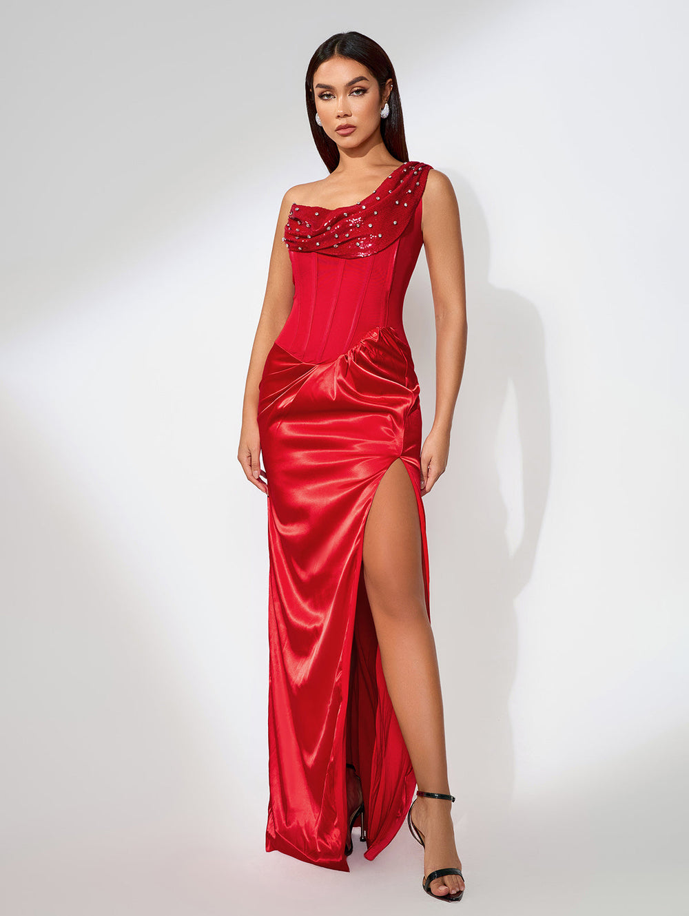 Shimmer all night in the High Split Sequin Asymmetrical Dress, a head-turning pick for glamorous dress for ladies party.