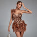 This Strappy Sleeveless Mini Sequined Bodycon Dress is perfect for a night out! The dress features a unique strappy design and sequined detailing on the bodycon silhouette for a statement-making look. The slim fit and mini length create a flattering shape.