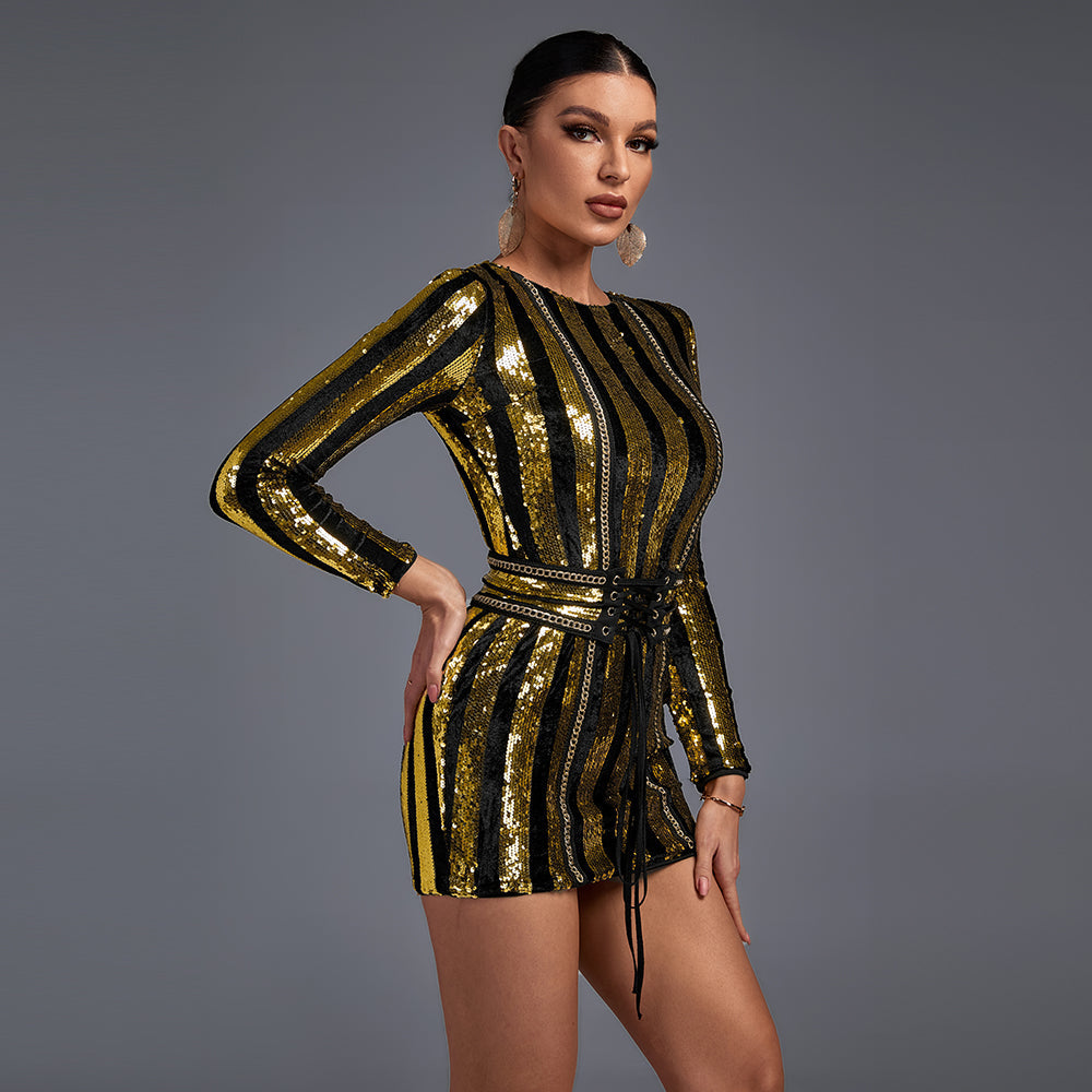 Let your bold style shine with this captivating Round Neck Long Sleeve Sequined Mini Bodycon Dress! Take a daring fashion risk and embrace the adventure. Shine bright and make a lasting impression!