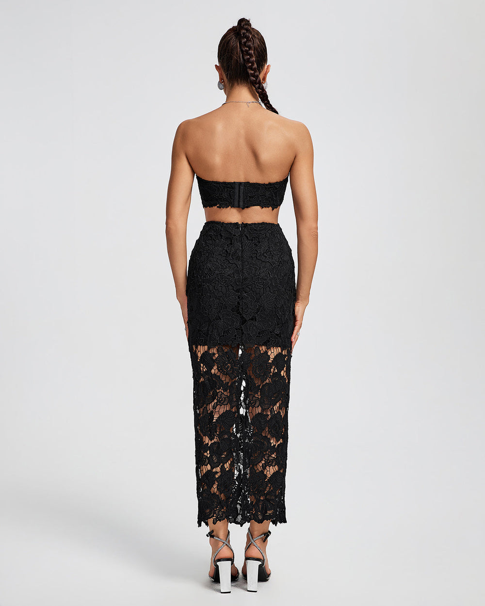Featuring a lace floral cutout bustier design, this maxi dress adds a touch of elegance to any occasion. Its form flattering silhouette and intricate lace detailing create a sophisticated look, while the cutout design adds a modern twist. Perfect for a formal event or a night out, this dress will make you feel confident and stylish.