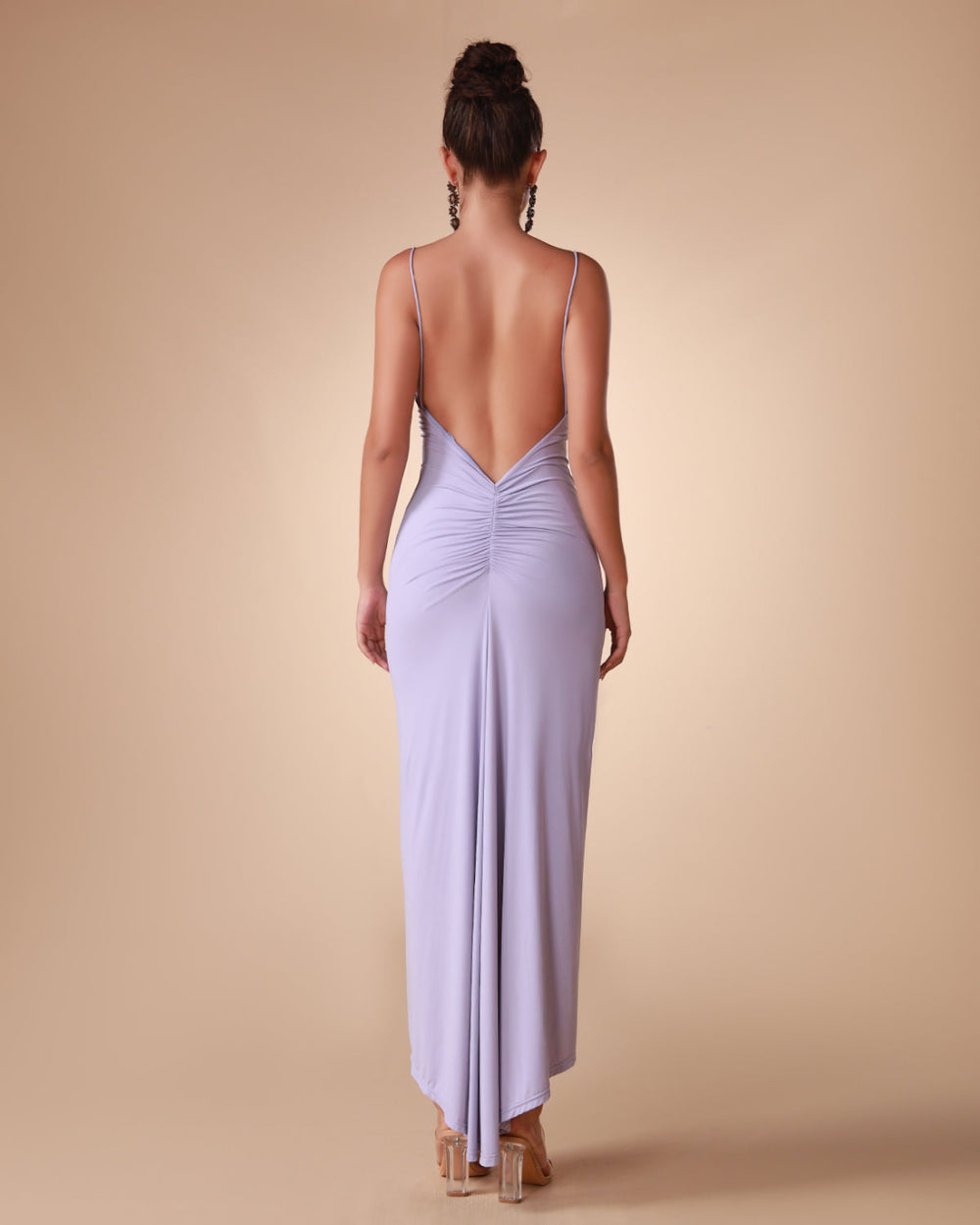 Be the belle of the ball in this stunning Lavender Strappy Backless Dress. The delicate lavender hue is perfect for accentuating the beauty of the intricate fully adjustable straps at the back and the graceful open back design. Flaunt your curves in this timeless yet modern piece of luxury.