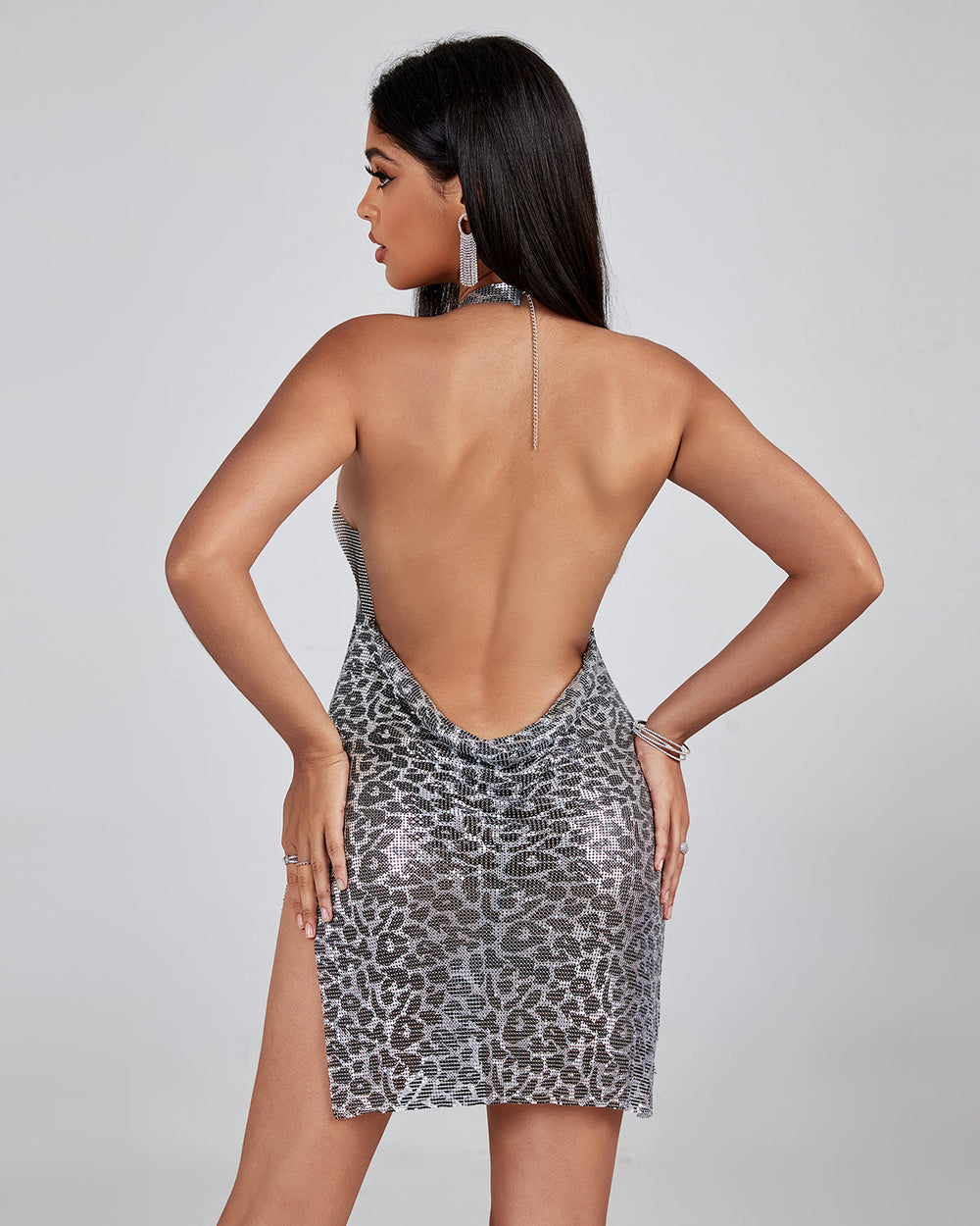 Step out of your comfort zone in style with this stunning leopard metallic mini dress. Crafted from shimmery mesh fabric, this edgy yet elegant look guarantees you'll be the center of attention. Dare to show off your daring side and make a bold entrance. Don't miss out!