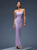 Lilac orchid hues and lace corset styling combine to form a dreamy maxi dress, great for modest dresses for women who crave elegance with a soft edge.
