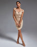 Make a bold statement in this Mesh Striped Bandage Cocktail Dress. This unique piece features stripes of mesh, creating an attractive visual effect. Its bandage design offers a flattering fit and hugs your curves for a confident yet stylish look.