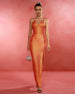 Gorgeous and sophisticated, this Metallic Orange Bandage Maxi Dress is sure to make you a standout at parties and events. Crafted from a shimmery metallic orange bandage material, this dress features a daring thigh-split and sleek cuts that hug your body. Timelessly chic and luxurious, this beautiful dress exudes class and opulence.