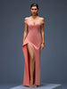 This off-shoulder asymmetric maxi dress combines clean lines with dramatic draping, creating a refined silhouette for formal occasions or high-fashion summer dresses for women.