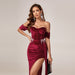 Experience the elegance and luxury of this Off Shoulder Split Thigh Velvet Prom Dress. Crafted with velvet fabric, it will give you an eye-catching look and highlight your best features. Enjoy your perfect night out with this stunning prom dress!