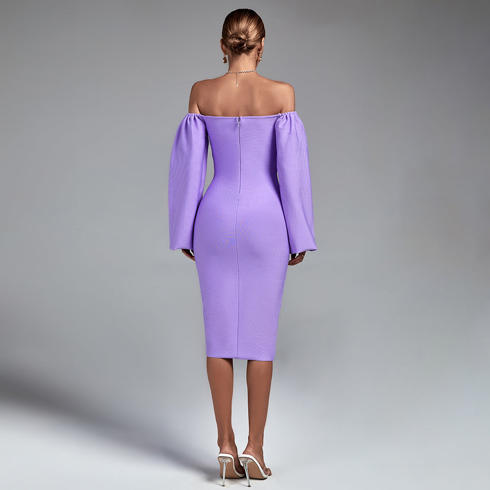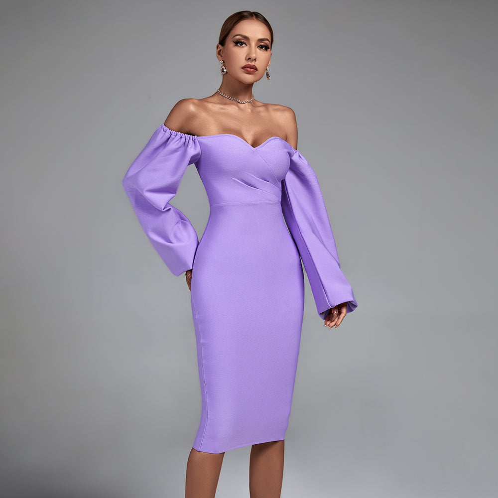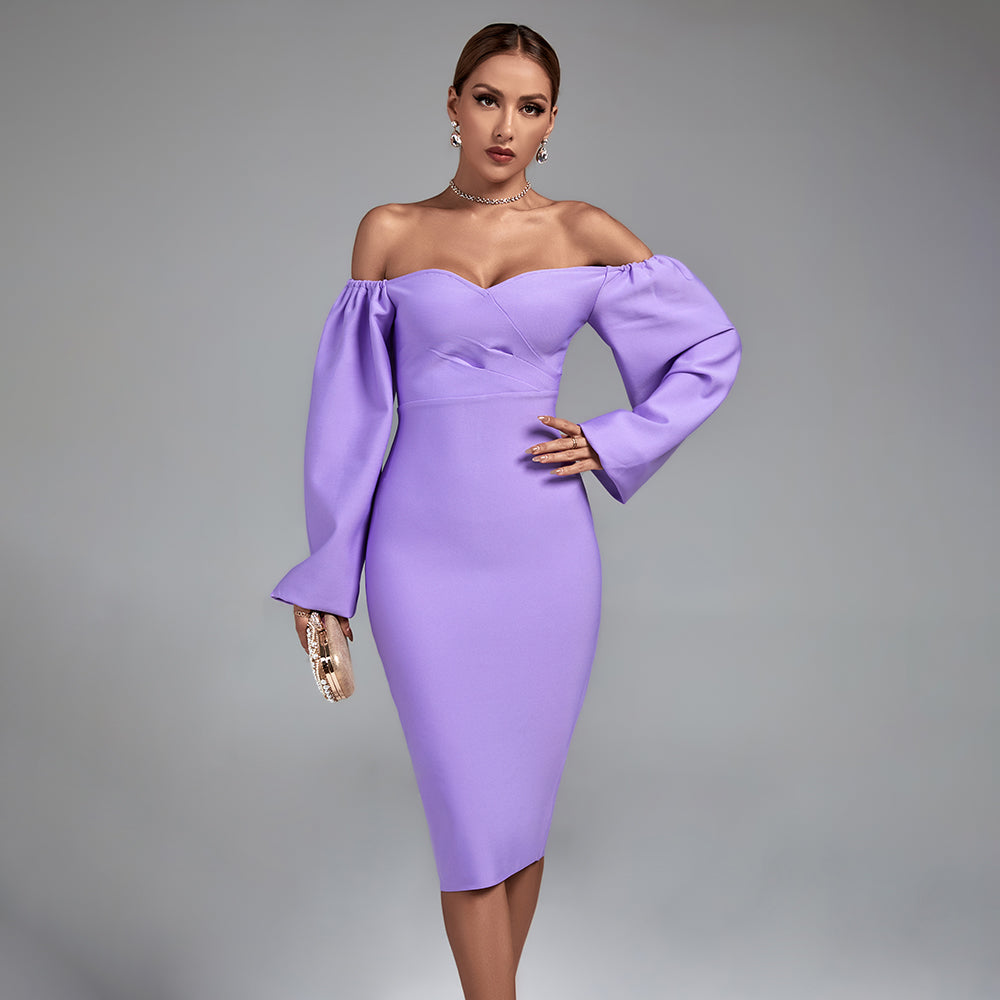 Take a daring step in fashion with this Off Shoulder Long Sleeve Midi Bandage Dress! Perfect for a night out, this stylish dress will give your look a unique edge and make you stand out wherever you go. Make a statement and show off your risk-taking side!