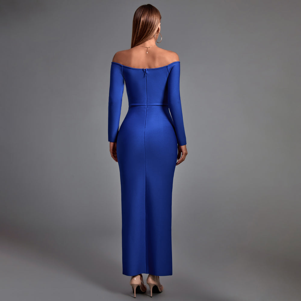 Flaunt your curves in the hottest new dress of the season! The Off Shoulder Long Sleeve Slit Maxi Bandage Dress will have you looking fabulous and feeling confident. Featuring a stylish off-shoulder neckline and long sleeves for a sophisticated look, the side slit gives you the perfect opportunity to show off your sleek moves! Who knew looking chic could be so fun?