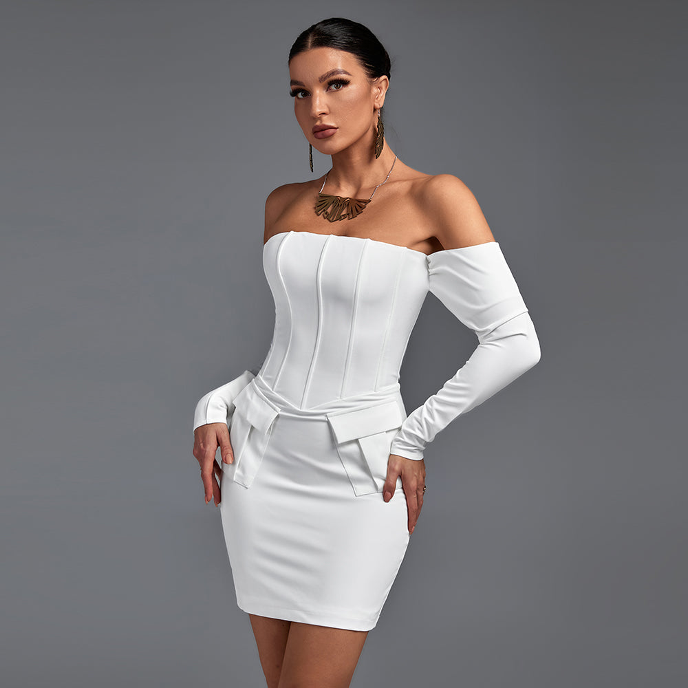 This Off Shoulder Long Sleeve Striped Mini Dress is a stylish and versatile wardrobe staple. Crafted from a lightweight fabric with a stripe pattern, it features an off-shoulder cut with long sleeves and a mini-length skirt. Perfect for any occasion.