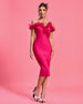 This multilayer ruffle bandage dress features an off shoulder design that exudes elegance and femininity. The intricate ruffle details add a touch of sophistication and the bandage material creates a flattering silhouette. Perfect for any formal occasion, this dress is sure to make you stand out with its unique and stylish design.