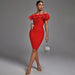 Off Shoulder Short Sleeve Feather Midi Bandage Dress