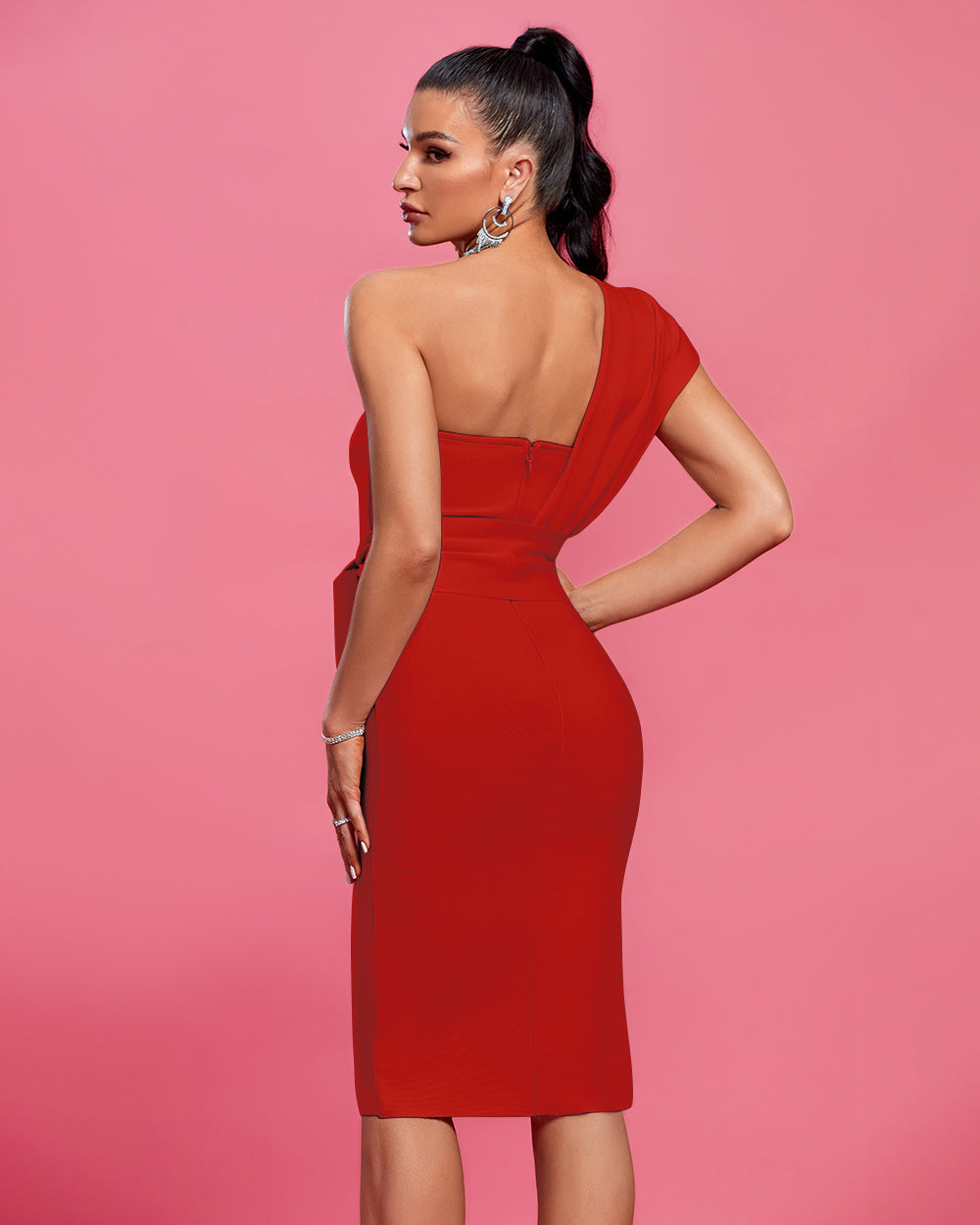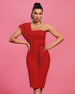 Show off your style in this statement one shoulder party dress. Crafted from bandage fabric for figure-hugging fit, it is complete with a belt to cinch in the waist for a flattering silhouette. Look and feel fabulous at your next event.