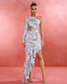 Introducing the One Shoulder Cut Out Floral Maxi Dress: a sophisticated and exclusive addition to your wardrobe. Crafted with a delicate floral print and featuring an elegantly cut out one shoulder, this maxi dress is perfect for accessorizing into an elegant look. Its timeless silhouette flatters all body types for a timeless statement.