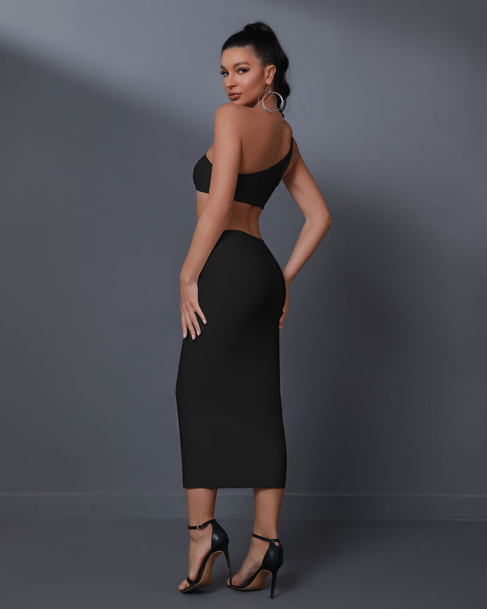 Accentuate your silhouette with our One Shoulder Cutout Midi Bandage Dress, crafted from our signature bodycon bandage material for a truly unique look. The asymmetrical neckline and daring cutout will draw the eye to your curvaceous figure, accentuated further by the midi length that showcases your legs. Dare to be different in this dress!