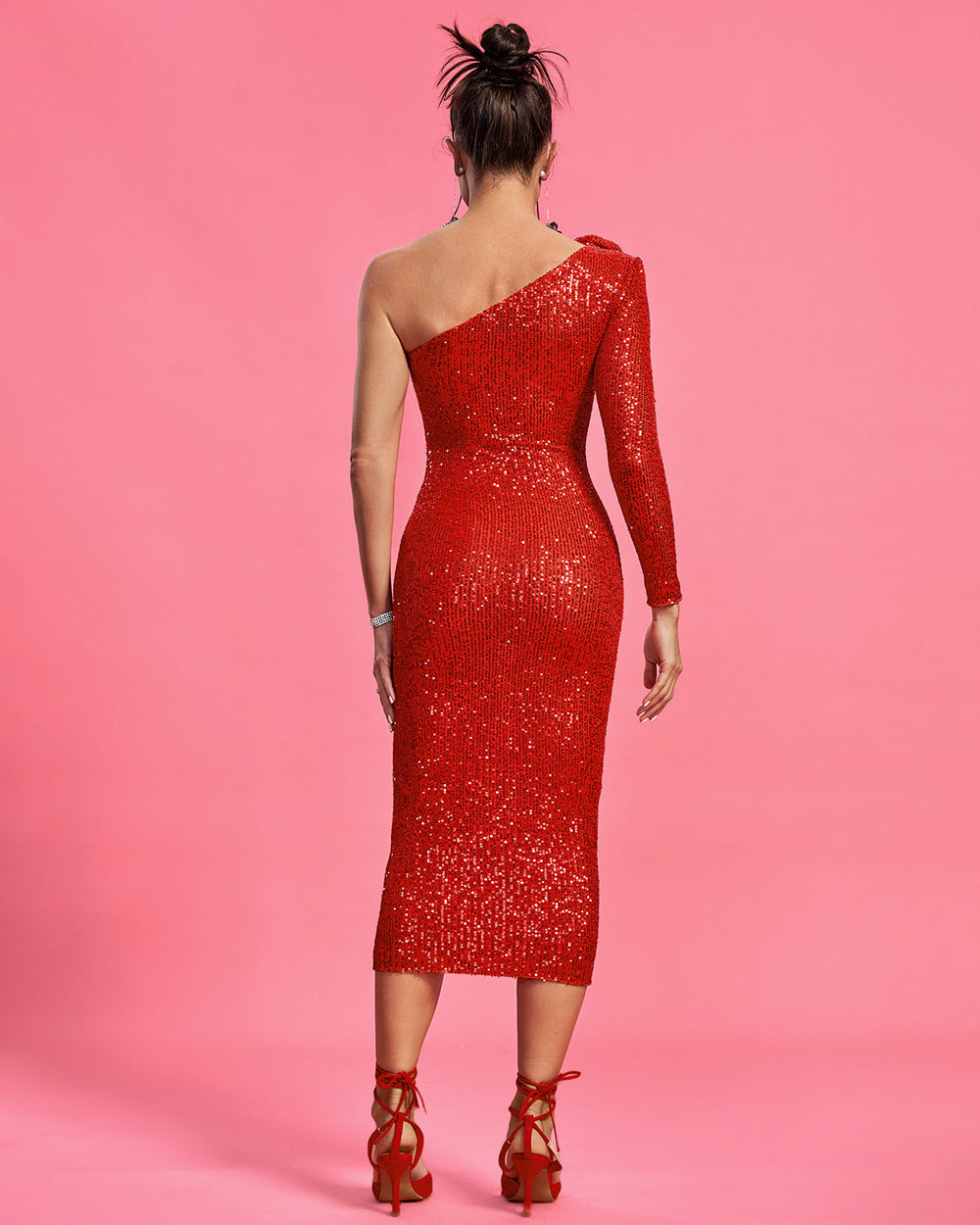 Step into the spotlight with our One Shoulder Flower Midi Sequin Dress. Featuring a glamorous one shoulder design and intricate floral sequin detailing, this dress exudes elegance and sophistication. Perfect for any special occasion, this dress will make you stand out and feel like a true fashion icon.