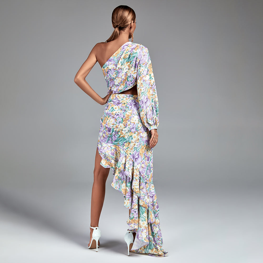 This One Shoulder Cut Out Floral Maxi Dress has a daring style that will have heads turning. Crafted from luxurious fabric, the trendy maxi dress features a one-shoulder silhouette with a cut-out design, a beautiful floral pattern, and a full length skirt. Perfect for special occasions and formal events.