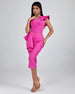 Display your sense of style and fun with this One Shoulder Ruffle Cocktail Bandage Dress. Its vivid colors and one-shoulder design make it a striking choice for any special occasion. The elegant ruffle detail adds texture and a captivating silhouette to this luxurious piece.