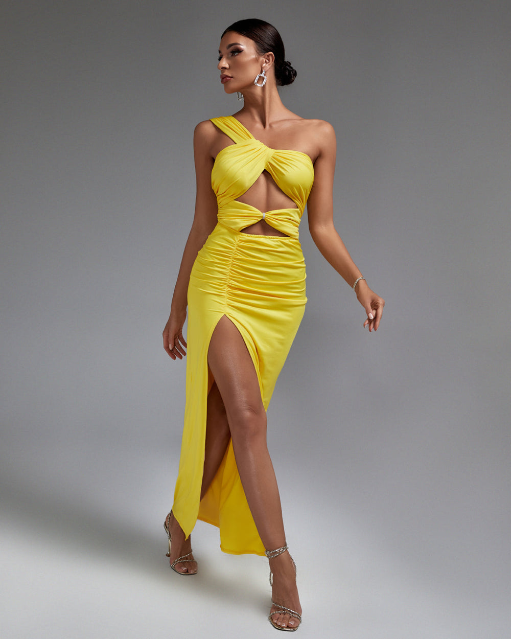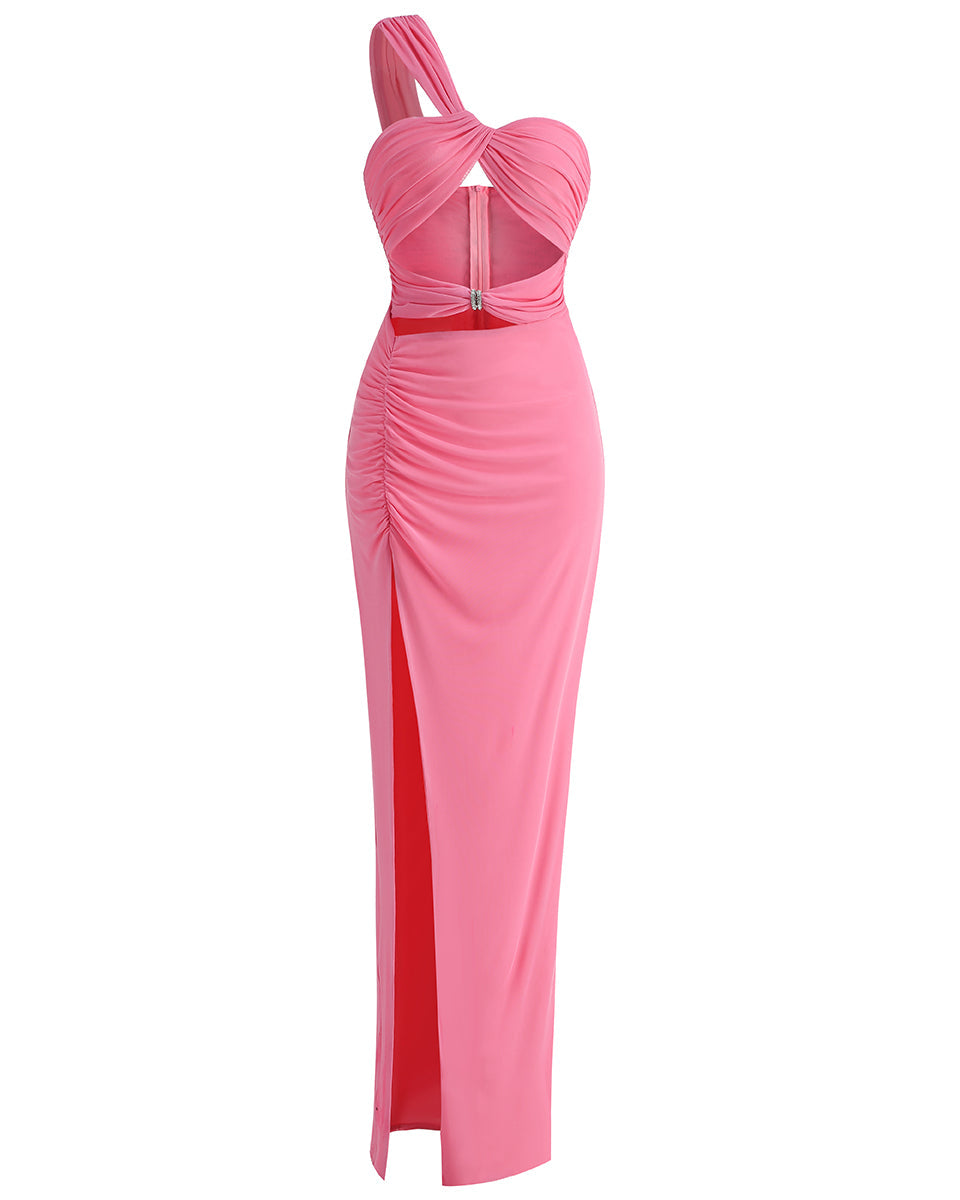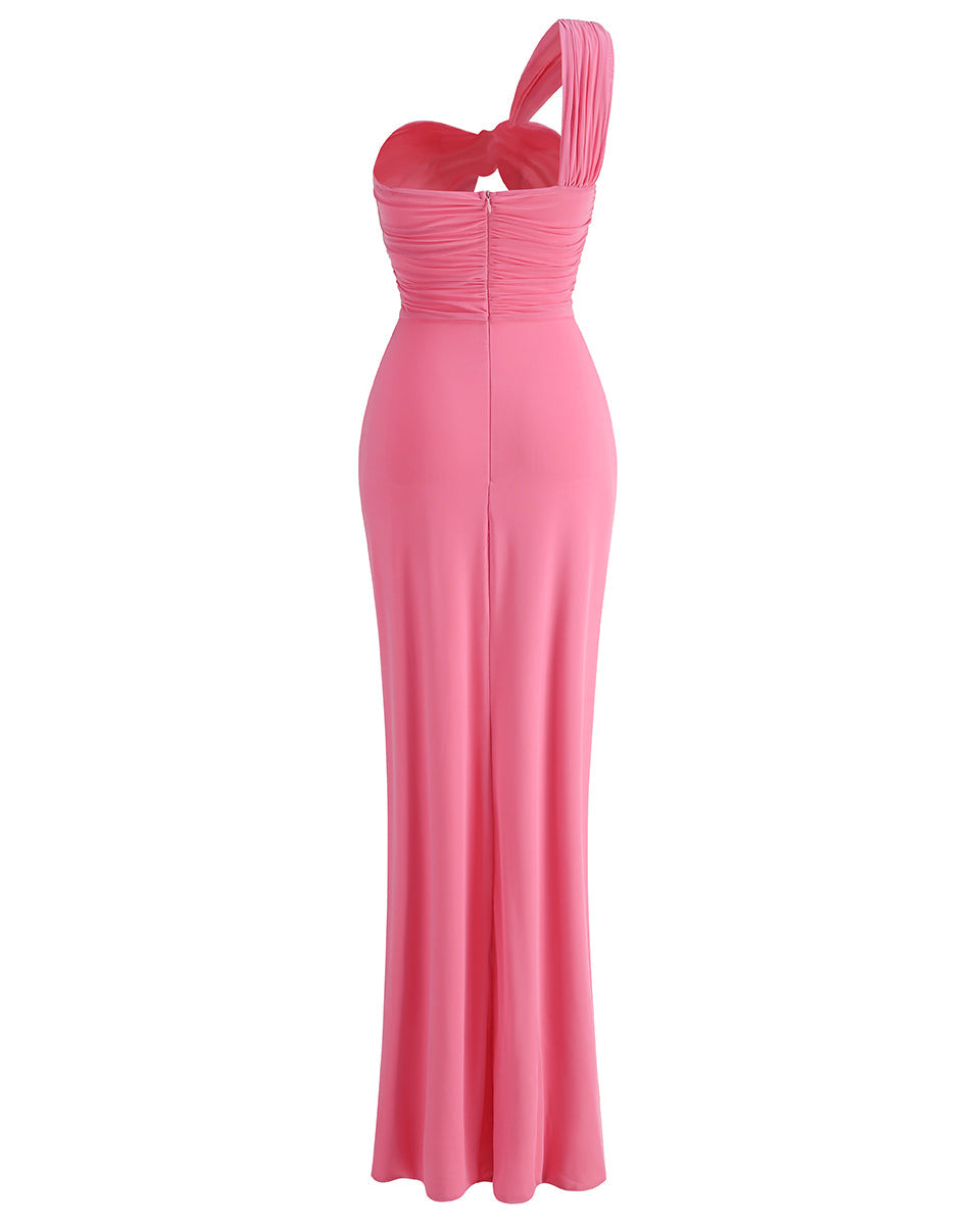 Fulfill your fashion ambitions in this One Shoulder Side Slit Maxi Dress. Push the boundaries of style and take a risk - this bold and daring dress is sure to turn heads. Make a statement and go for an adventure - this maxi will be the perfect addition to your wardrobe. Embrace the challenge!